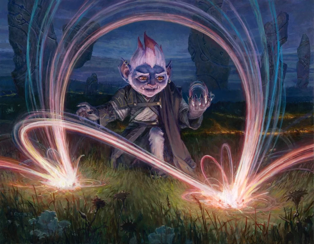 À première vue, c’est un plan de conte de fées. Une lumière dorée filtre à travers les feuillages, les rivières serpentent paresseusement entre les racines anciennes, et chaque peuple semble figé dans une harmonie immuable. Mais cette harmonie n’est qu’un instant suspendu. Car Lorwyn n’est jamais stable : il est pris dans un cycle inexorable, une oscillation entre lumière et obscurité, entre identité et altération.