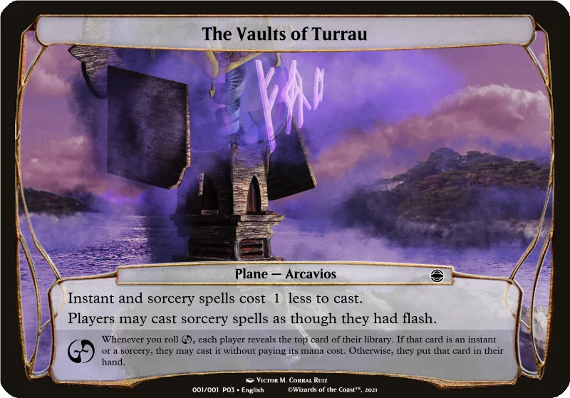 [Aparté : Arcavios est un plan fictif de l’univers de Magic: The Gathering, introduit dans l’extension Strixhaven: School of Mages (2021). Ce monde est centré sur l’université de Strixhaven, une institution magique d’élite rassemblant des mages de toutes disciplines. Arcavios se distingue par sa nature fusionnée : deux mondes jadis séparés se sont unis en un seul.]
